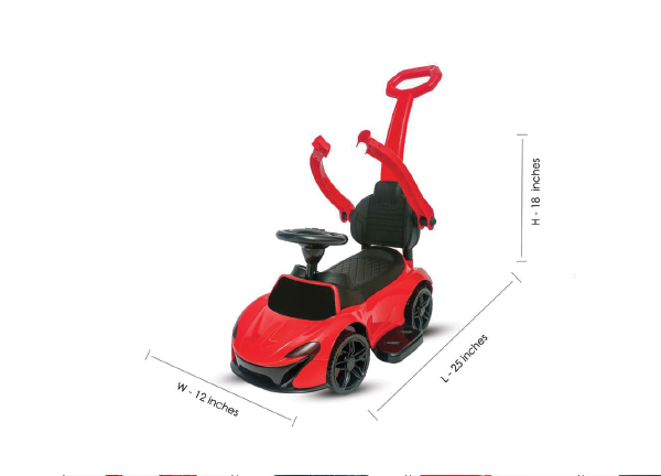 – For Children Age 1-5 Years – Ride On Push Car Stroller – With Safety & Support Handles – With Footrest – Detachable Support Handles & Footrest – Converts to Ride On Car – Sporty Look – Elegant Design – With Musical Horn – Colors: Red, Green, Yellow, Orange